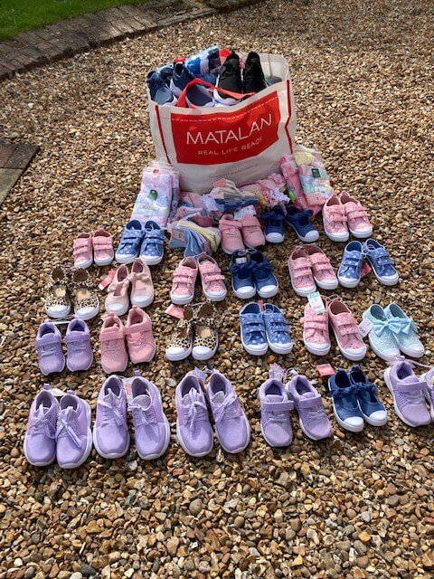 We recently purchased 40 pairs of girls and boys trainers, plus socks and underwear for Asylum Seekers/Refugee children.